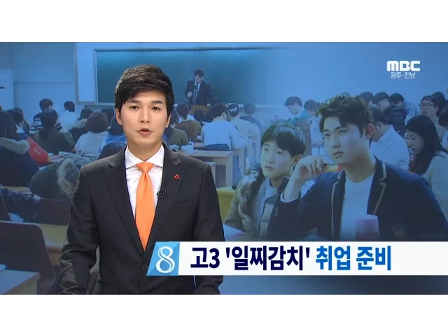 (앵커)수능시험을 마친 고등학교 3학년생들이일찌감치 취업 준비에 뛰어들고 있습니다.대학을 졸업하더라도취업의 문턱을 넘기가 힘들다보니,학생들을 또 다시 학원으로 향하고있습니다.이계상 기자..(기자)9급 공무원을 꿈꾸는취업 준비생들이 모여있는 학원 강의실입니다.쉰 명 넘는 준비생들 사이에유난히 앳된 학생들이...