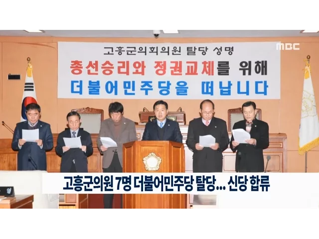 더불어민주당에 소속된 고흥군의회 의원 7명이 탈당 행렬에 가세했습니다. 고흥군의회 장세선 의장과김의규 부의장 등 의원 7명은오늘(20) 기자회견을 갖고특정 계파의 패권주의와 분파주의가 득세하는 정당은 더 이상 희망이 없다며,새로운 야당을 기반으로 국민통합과 정치개혁에 앞장서기 위해더불어민주당을 탈당한다고...