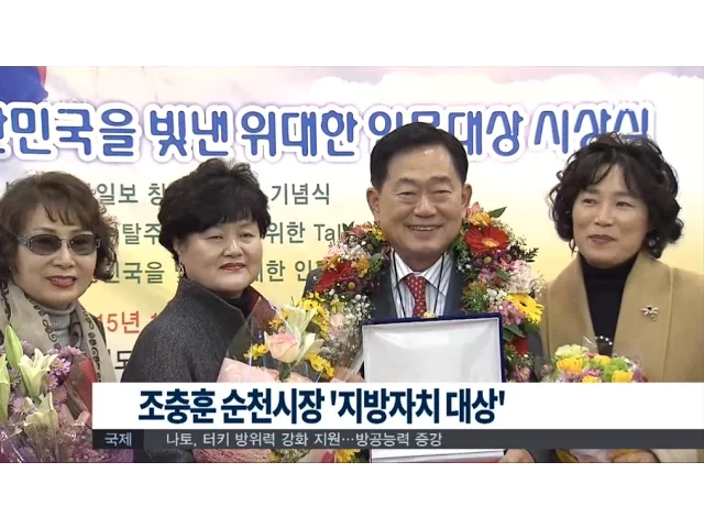 조충훈 순천시장이 국회도서관 대강당에서 열린 2015년 대한민국을 빛낸 위대한 인물 시상식에서 지방자치대상 창조경제부문 대상을 받았습니다.유로저널한국본사가 주최하고 한국언론기자협회에서 주관하는 이번 인물 대상은 정치, 경제, 사회, 문화, 서비스 등 다양한 분야에서 국가 발전에 기여한 공이 큰 인물을 발굴...