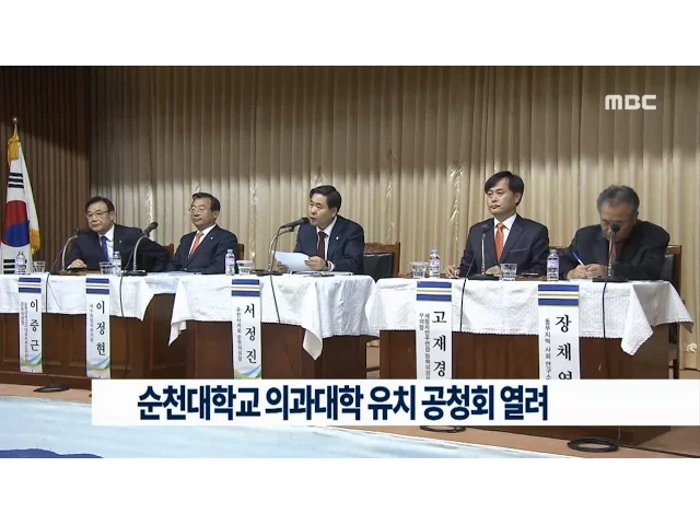 순천시의회 국립순천대학교 의과대학 유치 지원을 위한 특별위원회가 오늘, 순천시청 대회의실에서 순천대 의대 유치를 위한 공청회를 열었습니다.이 자리에서 이정현 새누리당 최고위원은 공공의료 인력을 배출할 수 있는 국립보건의료대학에 대한정부부처의 공감과 공공의료의 필요성을,고재경 새정치민주연합 정책위원...