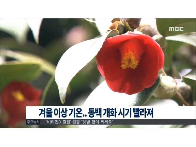 예년보다 따뜻한 겨울날씨로국내 최대 동백 군락지인여수 오동도에 동백 개화시기가 빨라지고 있습니다.여수시에 따르면이달들어 오동도에서 자생하는50년에서 백50년생 동백나무3천백여그루 가운데 25% 가량이붉은 꽃망울을 터트렸습니다.여수시는 예년같으면오동도 동백나무가해마다 이달에 개화를 시작했지만올해는 이상...