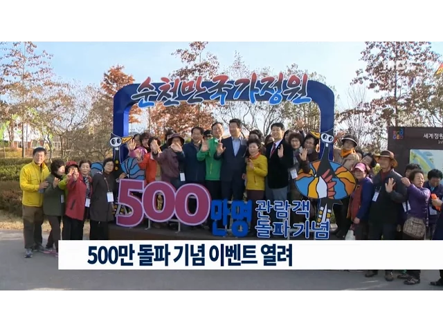 순천만 국가정원의 관람객 500만 명 돌파를 기념하는 이벤트가 현장에서 열렸습니다.순천시는 순천만 국가정원의 관람객 5백만 돌파 기념 감사의 떡 나눔 행사와 함께 시민들이 서로에게 입장권을 선물하는 릴레이 입장권 나눔 이벤트를 열었습니다.또 국가정원에서 운행되고 있는 3대의 관람차를 꽃으로 장식해 퍼레이드...