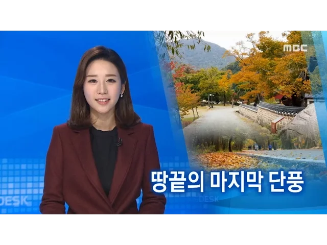 ◀ANC▶ 설악산에서 시작된 단풍 물결이 한반도 최남단 땅끝 해남에서 절정에 이르고 있습니다. 난대림 숲과 어우러진 오색 빛깔의 단풍이가을 산행객들의 마음을 사로잡고 있습니다. 문연철 기자입니다. ◀END▶ ◀VCR▶ 엊그제까지 산 정상에 머물던 단풍 물결이산아래 천년고찰까지 ...