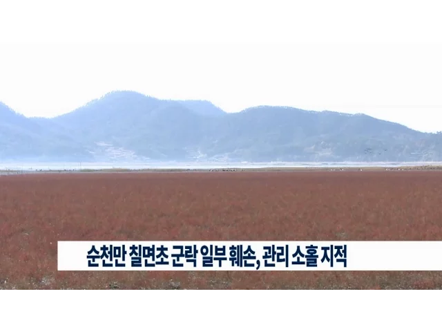 순천만 칠면초 군락이 일부 훼손돼관리가 부실하다는 지적이 일고 있습니다.순천시에 따르면 최근 순천 모 대학교 학생 5명이순천만에 들어가 칠면초 군락 50㎡를 훼손하는 것을시민이 발견해 경찰에 신고했습니다.순천시는 대학생들이 천연 의약물을 연구하기 위해칠면초를 밴 것이라며,고의성이 없는 만큼 형사고발은 하...