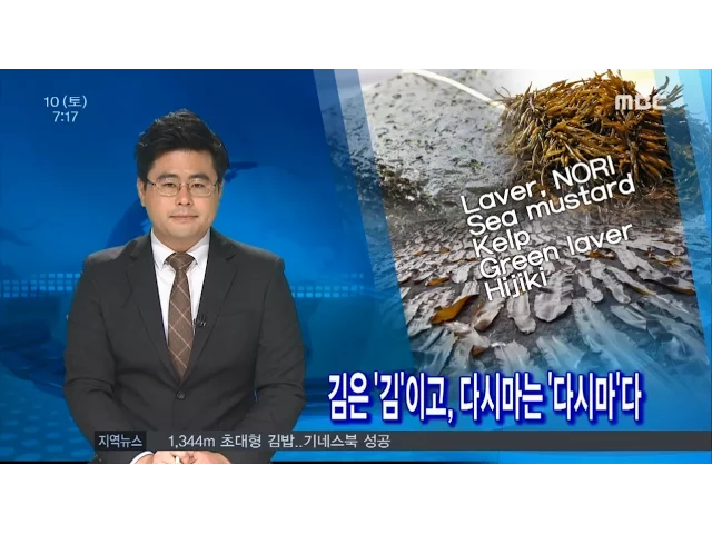 ◀ANC▶지난해 한글날, 수출 시장에서 국내산 청정 해조류가 일본어로 표기돼 팔려야 하는 현실을 보도해 드렸는데요,1년여 만에 해조류 한글식 영문 표기가 본격 추진되고 있습니다.양현승 기자가 취재했습니다. ◀END▶ ◀VCR▶4년 전부터 해조류 가공식품을 미국 등에 수출해오고 있...