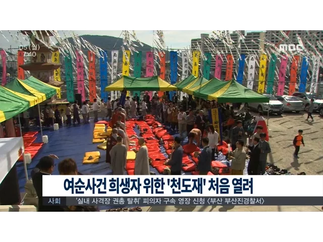 여순사건 희생자들을 위한 천도재가처음으로 열렸습니다.오늘(4) 여수 장덕사에서는 여순사건 유족들이 참여한 가운데 여순사건 희생자에 대한 천도재가 진행됐으며, 정부 진실화해위원회가 공식 희생자로 확인한 290여 명에 대한 위패를 모셨습니다.천도재는 죽은 이의 영혼을 극락으로 보내기 위해 치르는 불교의식으로...