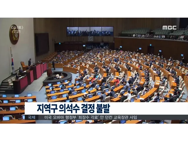 국회의원 선거구 획정위원회는20대 국회의원 지역 선거구수를 결정하지 못했습니다.선거구 획정위는 어제(2일) 전체 회의를 열었지만, 헌법재판소가 제시한 인구기준을 준수하는 동시에 농어촌 지역 대표성을 확복할 수 있는 방안을 마련하는데 어려움을 겪어 지역 선거구 수 결정에 실패했습니다.한편, 244석에서 249석 가...