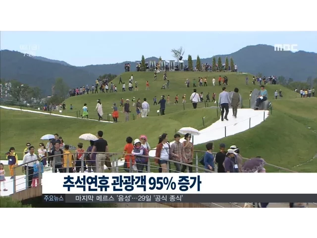추석연휴 기간 순천을 찾은 관광객이 95%나 증가한 것으로 나타났습니다.순천시는 추석연휴 4일간,지난해 같은 기간에 비해 95%가 증가한 23만 4천여 명이 순천의 관광지를 다녀갔다고 밝혔습니다.특히 드라마촬영장과 순천만 국가정원은 2배이상 관광객이 증가했으며,국가정원의 경우 전체 관람객 가운데 외지인이 70%를...