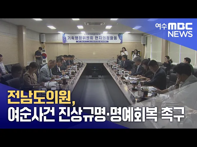 전남도의원들이 여순사건 진상규명과 명예회복을 위한 전라남도의 역할을 촉구하고 나섰습니다.강문성 의원은 최근 열린 여순사건지원단 업무보고에서올 상반기 개관할 예정인 여순사건 홍보관의 중요성을 강조하며홍보관 주변 인프라 구축과 환경 정비를 당부했습니다.이어 김화신 의원은희생자 유해 발굴이 차질 없이 추...