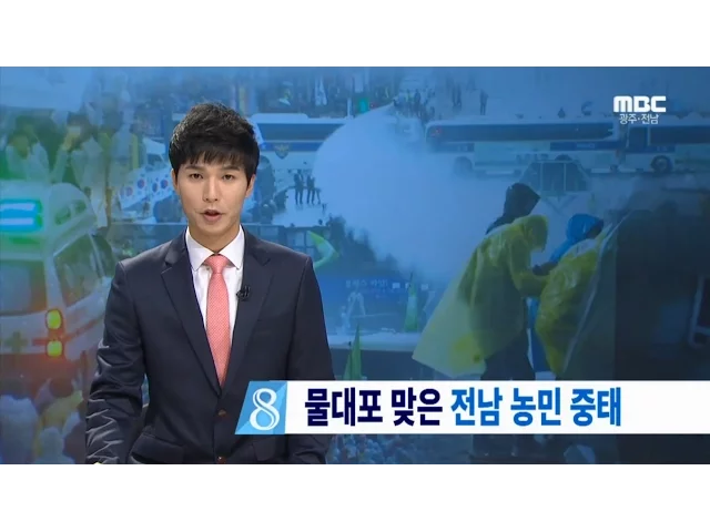 ◀ANC▶어제 서울에서 열린 대규모 집회에서 물대포를 맞고 쓰러진 전남의 한 농민이 중태에 빠졌습니다. 집회를 주최한 측이 경찰의 과잉진압을 규탄하고 있습니다. 김인정 기자입니다. ◀VCR▶어제 오후 7시 30분쯤,서울시 종로구청 앞에서 민중총궐기 대회에 참가한 전남 보성군 출신 농민 68...