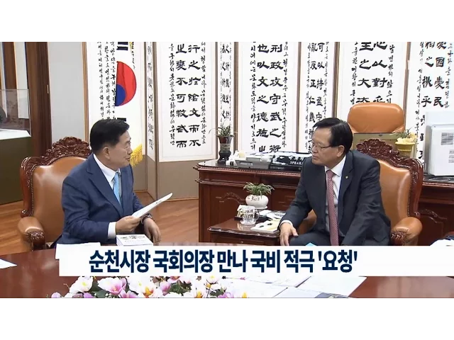조충훈 순천시장이 국회를 방문해 내년도 국비 사업 반영을 요청했습니다.조충훈 시장은 오늘,정의화 국회의장과 예산결산특별위원회 위원장, 기획재정부 차관 등과 잇따라 간담회를 갖고지역 현안사업에 대한 정부 지원의 필요성과 당위성을 설명하고 국회 차원의 적극적인 지원을 요청했습니다.이번에 시가 건의한 주요 ...
