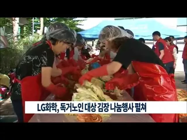 LG화학 여수공장 사회봉사단이독거노인을 대상으로이색 김장 나눔 행사를 펼쳐 눈길을 모았습니다. LG화학 임직원과사택부녀회 백여명은 오늘,여수 노인복지관에서 복지관 자원봉사자과 함께직접 김치를 담가 독거노인 450세대와 경로당 50개소에 전달했습니다. LG화학은기업시민 파트너라는 사회공헌을 철학으로이번 김장...