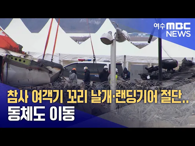 국토교통부 항공철도사고조사위원회가1229 제주항공 여객기 참사 원인 조사를 위해여객기의 주날개와 꼬리 날개, 랜딩기어를 떼어냈습니다.어제(14)부터 시작된 절단 작업은오늘(15) 오전 강풍과 눈 등 영향으로잠시 중지됐다가 다시 이어졌고, 내일(16)까지 랜딩기어와 남은 동체 등을 공항 내 인근 공터로 옮길 예정입니...