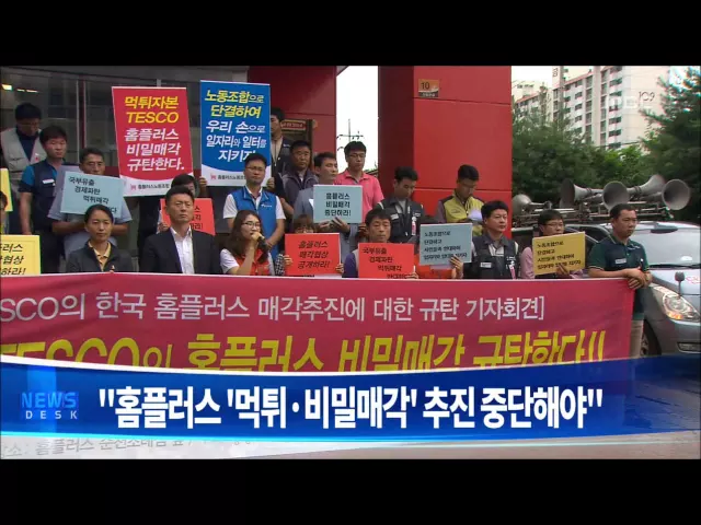 영국 테스코사가 대형마트인 홈플러스의 매각을 추진하고 있는 것으로 알려진 가운데 순천에서 이를 규탄하는 집회가 열렸습니다. 홈플러스 노동조합 순천지부와 민주노총은 오늘(8) 순천 홈플러스 조례점 앞에서 기자회견을 열고, 영국 테스코가 지난 15년간 한국에서 막대한 이윤을 챙긴 뒤, 어떤 정보도 공개하지 않은 ...
