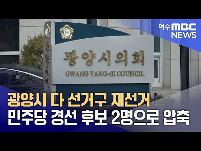 오는 4월 예정된 광양시의원 재선거를 위한 더불어민주당 경선 후보가 2명으로 압축됐습니다더불어민주당 순천광양곡성구례을 지역위원회는 4·2 재보궐선거 광양시 다 선거구 기초의원 공천 후보자 선출을 위한 권리당원 자발적 ARS 투표 결과 이돈견 민주당 지역위원회 민원조직실장, 이윤수 광양시 새마을금고 부이사장이...