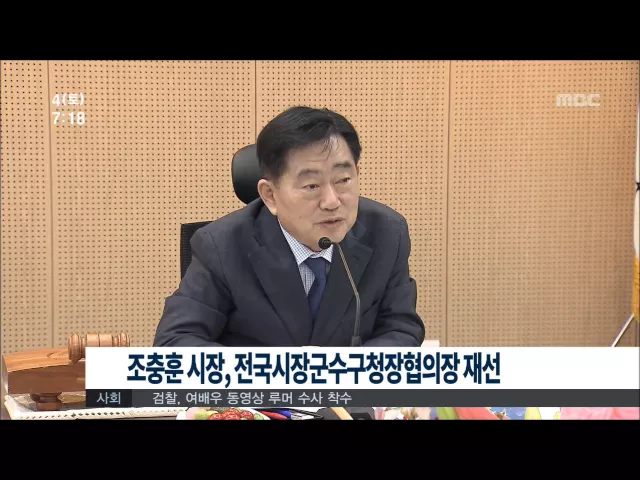 조충훈 순천시장이 민선6기 2차년도 전국시장군수구청장협의회 대표회장에 재선됐습니다.전국시장군수구청장협의회는 오늘, 여의도 익스콘벤처타워에서 '공동회장단회의'를 열고 2차년도를 새롭게 이끌어갈 신임 대표회장에 조충훈 순천시장을 대표회장으로 선임했습니다.조충훈 대표회장은 "민선6기 2차년도는 지방자치 2...