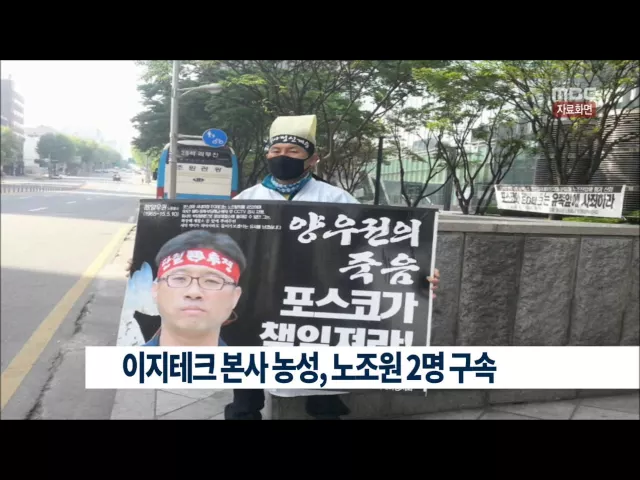 한편,포스코 사내하청 업체 이지테크의 양우권 분회장이 스스로 목숨을 끊은 것과 관련해,이지테크 박지만 회장과의 면담을 요구하며본사 사무실을 점거한 노조원 두 명이 구속됐습니다.이들은 지난 3일 "회사가 노조의 계속된 면담 요청을 무시하고 있다"며, 서울 강남구의 이지그룹 본사 안에서 농성을 하다 특수건조물...
