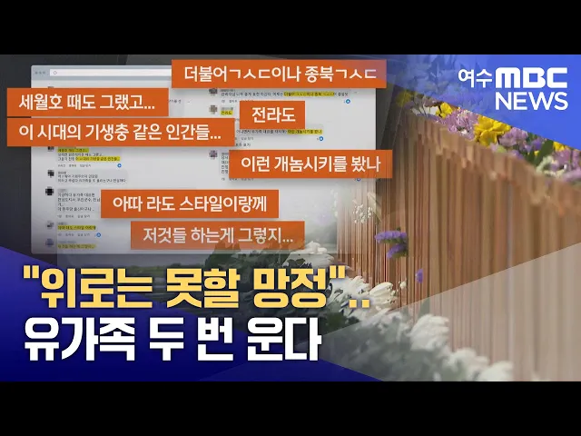◀ 앵 커 ▶제주항공 여객기 참사가 발생한 뒤 유족을 향한 허위사실 유포와 조롱·비방이 SNS와 일부 인터넷 커뮤니티 사이트에서 확산되면서 충격을 주고 있습니다.대형참사 앞에 슬픔과 고통을 나누지는 못할 망정어떻게 이런 행태를 할 수 있는지, 분노가 커지고 있습니다.김 윤 기자가 취재했습니다.◀ END ▶◀ 리포트 ▶극...