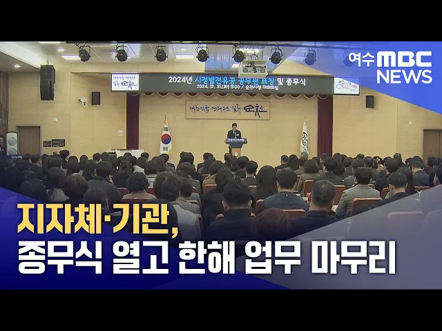 2024년 마지막 날을 맞아 지자제와 주요 기관들이 종무식을 갖고 한해 업무를 마무리했습니다.여수시와 순천시 등 각 시·군과 의회,공공기관 등은 오늘(31) 종무식을 열고 유공자 표창장 수여식 등을 진행하는 한편, 올 한 해 주요 성과를 돌아보고 보다 나은 행정 서비스 제공을 다짐했습니다.지자체와 주요 기관들은 시무...
