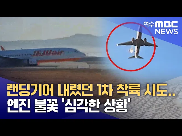랜딩기어 내렸던 1차 착륙 시도..엔진 불꽃 ‘심각한 상황’