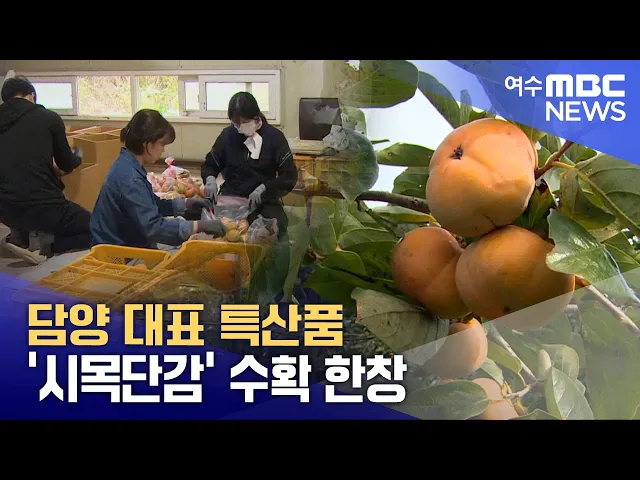 ◀ 앵 커 ▶지금 담양에서는 대표 특산품인 '시목 단감' 수확이 한창입니다.시목 단감은 다른 지역의 단감 보다 당도가 높고 친환경으로 재배돼 인기가 매우 높은데요.하지만 기후변화로 생산량이 급감하면서농민들의 근심은 커지고 있습니다.보도에 김영창 기자입니다.◀ 리포트 ▶주황색 빛깔의 단감이 주렁주렁 매달려 있습...