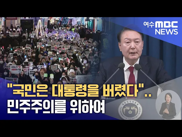 ◀ 앵 커 ▶12.3 내란사태를 주도한 윤석열 대통령이 대국민 담화를 통해 불법 비상계엄의 정당성과 필요성에 대해 궤변을 늘어놓았습니다.이를 지켜본 시민들은 정상적인 사고를 하지 못하는 대통령을하루 빨리 끌어내려야 한다고 입을 모았습니다.김 윤 기자가 취재했습니다.◀ END ▶◀ 리포트 ▶12.3 내란사태를 주도한 윤석...