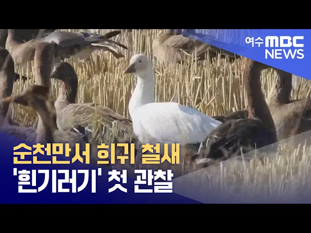 순천만에서 희귀 철새인 흰기러기가 처음으로 관찰됐습니다.순천시는 어제(1) 오전, 순천만 희망농업 단지에서 흰기러기 한 마리가 관찰됐다고 밝혔습니다.흰기러기는 국제자연보전연맹이 지정한멸종 위기종으로주로 북아메리카 지역에서 월동하며,국내에서는 잘 관찰되지 않는 조류입니다.