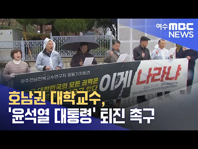 호남권 대학교수와 연구자들이윤석열 대통령의 퇴진을 요구하는시국선언에 참여했습니다.전국사학민주화교수연대 광주전남전북지부는 오늘(27) 기자회견을 열고윤석열 대통령의 거짓말과무책임한 국정 운영이 대한민국을혼란과 도탄에 빠뜨리고 있다며국민을 우롱하고 민주주의를 훼손하는대통령은 필요없다고 비판했습니다...