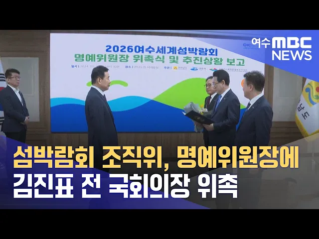 2026여수세계섬박람회 조직위원회가김진표 전 국회의장을명예위원장을 위촉했습니다.섬박람회 조직위원회는 오늘(4),전남도청 서재필실에서김영록 지사와 정기명 시장, 박수관 위원장, 박명성 총감독 등이 참석한 가운데,김진표 전 국회의장에 대한 명예위원장 위촉식을 갖고,예산확보와 참가국 유치, 후원, 홍보 등, 박람...