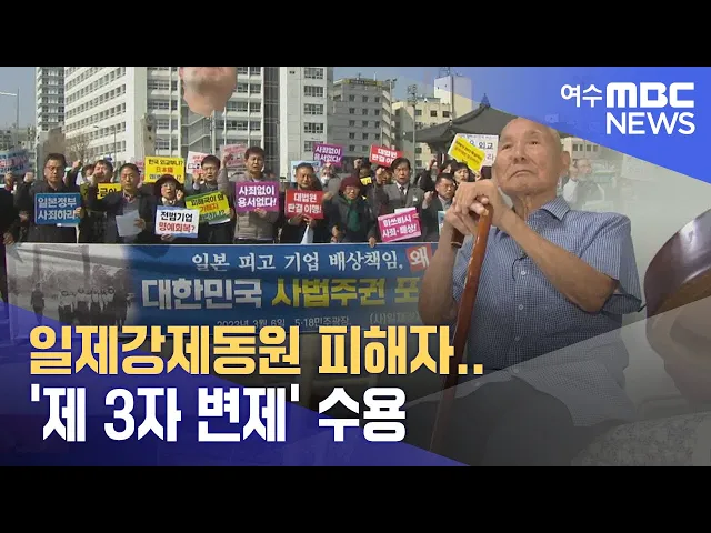 ◀ 앵 커 ▶일제강제동원 피해자에게 지급해야 할 배상금을일본 기업 대신 우리 정부가 지원하는 '제 3자 변제' 방식을 수용한 징용피해자가 한명 더 늘었습니다.얼마 전 양금덕 할머니에 이어이번에는 이춘식 할아버지가3자 변제를 수용한 건데요하지만 일부 가족들은 할아버지의 의사 표현이 온전치 않은 상태에서추진된 것...
