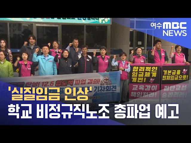 교육당국과 집단임금교섭을 벌여온학교 비정규직 노동자들이 오는 12월 6일 총파업을 예고했습니다.전남학교비정규직연대회의는오늘 전남도교육청 앞에서 기자회견을 열고전국 조합원들의 압도적인 찬성으로쟁의행위가 가결됐다며 임금교섭 파행의책임이 있는 시도교육감들의 결단을촉구했습니다.이들은 기본급 정상화와 임...