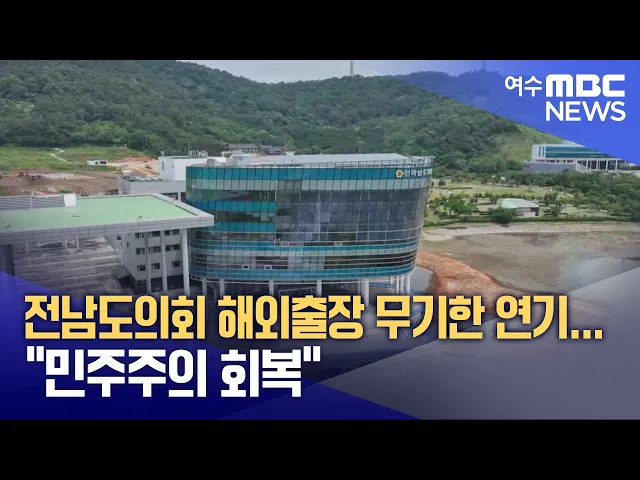 예정됐던 국외출장을 모두 취소한 전남도의회가내년 의원 국외연수도 무기한 연기하기로 했습니다.전남도의회는 국정 혼란과 정치적 긴장 속에서의원들의 해외 출장이 적절하지 않다고 판단했다며대신 민주주의 회복과 도민 안정을 위한 의정활동에 전념하겠다고 밝혔습니다.앞서 전남도의회는이번 달 예정된 대만과의 국제...
