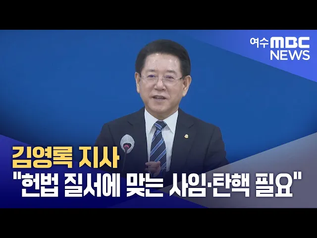 불법 계엄과 탄핵 무산 등에 대해 비판의 목소리를 높이고 있는 김영록 전남도지사가연일 신속한 탄핵의 필요성을 강조하고 있습니다.김 지사는 오늘(10) 실국 정책회의에서헌법 질서에 부합하는 대통령 사임이나 탄핵이 즉시 이뤄져야 한다며'한-한 공동 국정운영'에 대해서도받아들일 수 없다고 밝혔습니다.이어 앞으로 ...