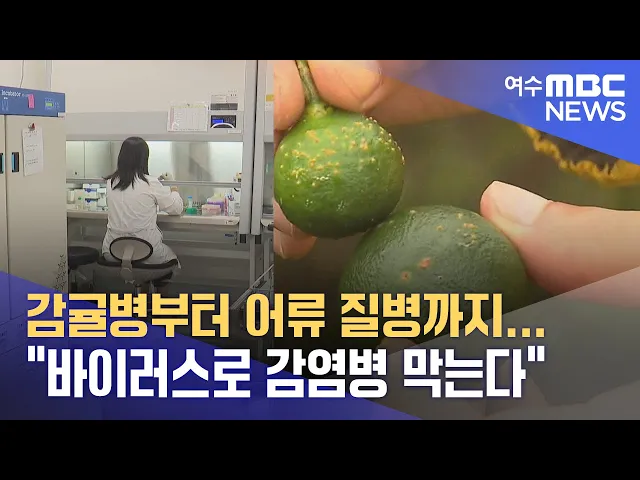 ◀ 앵 커 ▶감귤 재배 농가의 해묵은 골칫거리였던 감염병 방제에 획기적인 기술이 개발됐습니다.세균을 잡아먹는 바이러스를 활용한 방법인데, 어류 질병 방제에도 기술 적용이 가능해 다양한 분야에 활용될 전망입니다.안준호 기자가 취재했습니다.◀ 리포트 ▶물병 모양의 실험용기 안에 희뿌연 용액이 담겨 있습니다.1억 여...
