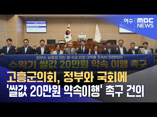 고흥군의회가 쌀 재배 농민들의 경영난 해소를 위해정부의 쌀값 20만 원 보장 약속 이행을 촉구하고 나섰습니다.고흥군의회는 오늘(9),수확기 쌀값 폭락과 쌀 생산비 상승으로 고통받는 농민들을 위해정부가 약속한 수확기 쌀값 20만원 이상 보장을 위한재고 물량 시장격리와 수입쌀의 용도별 운용계획 조정 등을 요구하는...