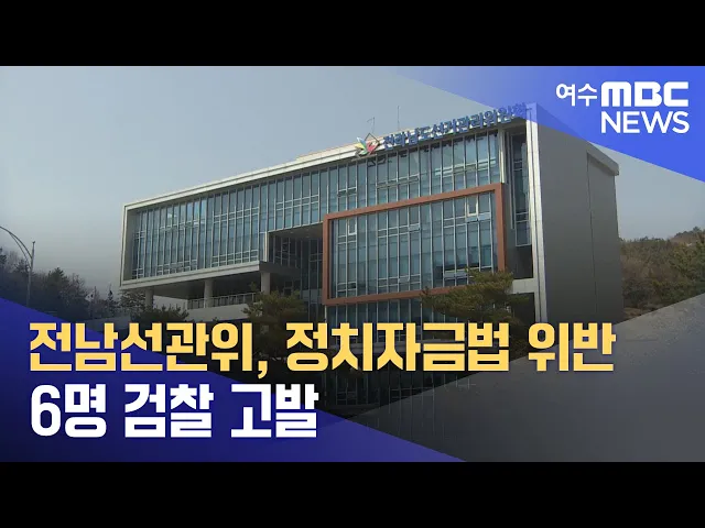 전라남도선거관리위원회가지난 22대 총선에서정치자금법 위반행위 2건을 확인하고모두 6명을 검찰에 고발했습니다.이들 중 3명은 선거사무원에게 수당과 실비를 초과해43만 원 상당의 식사를 제공하고이를 회계보고서에 허위로 기재하게 한 혐의 등을 받고 있습니다.또, 정치 자금 3억4천3백여만 원을 직접 주도해 지출한 ...