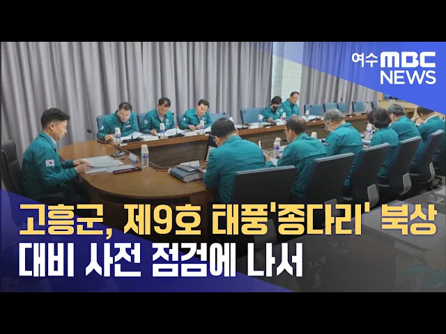 제9호 태풍 종다리가 북상함에 따라고흥군이 태풍 피해 최소화를 위해사전 대비 점검에 적극 나서고 있습니다.고흥군은 태풍 북상에 선제적으로 대응하기 위해 오늘(20) 오전, 긴급 상황판단회의를 갖고,인명 피해 우려 지역과 해수욕장 11곳,대형공사장과 태양광 시설,저수지와 방조제, 하천, 항만시설 등, 공공시설물 813...