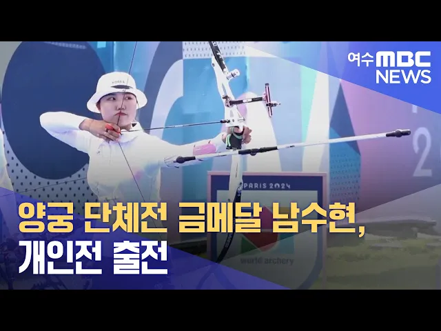 파리올림픽 여자 양궁 단체전에서금메달을 따낸 순천시청 소속 남수현이 양궁 개인전에 출전합니다.남수현은 한국시간으로 오늘(31)밤 10시 10분 개인전 32강과16강을 차례로 치르며 두 번째 메달에 도전합니다.올림픽 단체전 10연패를 달성한남수현은 이번 대회 랭킹 라운드에서 2위를 차지하는 등 좋은 컨디션을 유지하고...
