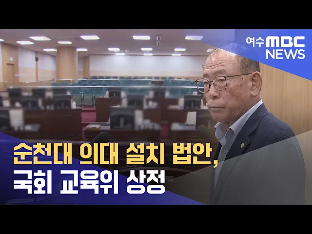 순천대학교 의과대학 설치를 위한 법안이 국회 교육위원회에 상정됐습니다.국회 교육위는 오늘(24) 오후김문수 더불어민주당 의원이 대표 발의한'국립순천대 의대 설치 및 대학병원 설립을 위한 특별법안' 등을 포함해21개 법안을 상정하고 심의에 들어갔습니다.해당 법안에는 입학 정원 100명 안팎의의대와 대학병원 설치,...