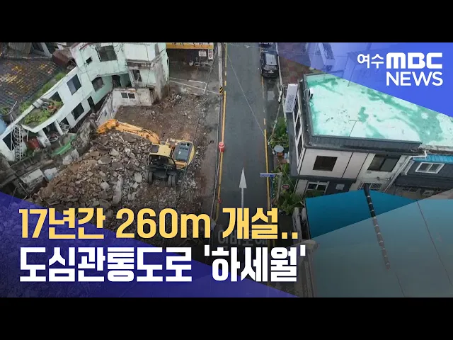 ◀ 앵 커 ▶공사 착공 17년간 260m를 개설하는데 그친 거북이 도로공사 현장이 있습니다.목포시 원도심 관통도로인데요, 공사기간이 늘어나면서 사업비는 두배 가까이 늘고, 원도심 활성화는 요원한 상황입니다.신광하 기자가 보도합니다.◀ 리포트 ▶목포시 목원동의 편도 1차로 주변 건물 철거작업이 진행되고 있습니다.장맛...