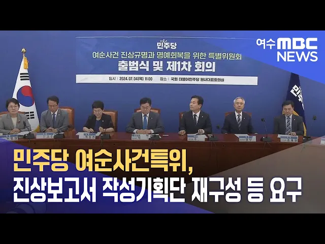 민주당 여순사건 특별위원회가 진상조사보고서 작성기획단의 재구성 등을정부에 공식 요구했습니다.민주당 여순사건특위는 진상조사보고서 작성기획단 단장을 포함해 극우적 역사관과 망언으로 문제를 일으킨단원들을 새로 임명해야 한다며오는 18일까지 이에 대한 입장을 밝힐 것을 정부 여순사건위원회에 요구했습니다.여...