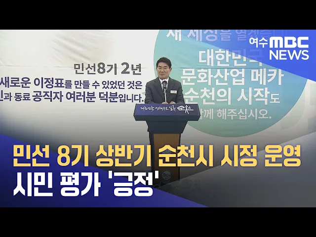 순천시의 민선 8기 상반기 시정 운영에 대해시민들이 긍정적으로 평가한 것으로 조사됐습니다.순천시가 최근 실시한민선 8기 2주년 평가 여론조사에 따르면 순천시 거주 만족도와 관련해 87.5%가 살기 좋다고 응답했고순천시의 핵심 추진해야 할 사업으로는 의대 유치 등 응급의료환경 개선 52%, 원도심 활성화 13% 등 순으...