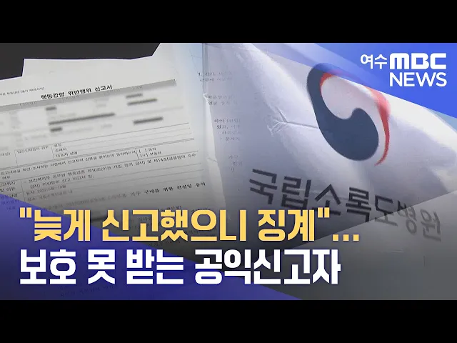 ◀ 앵 커 ▶부조리를 막겠다며 용기를 낸 내부고발자가오히려 피해를 본 사례가 뒤늦게 알려졌습니다.법적으로 보호받아야 할 공익신고자는늦게 신고했다는 이유로징계를 받았습니다.보도에 김단비 기자입니다.◀ 리포트 ▶한센병 치료와 관련 연구를 위해 설립된보건복지부 국립소록도병원입니다.이 병원 직원이 직장 상사의 ...