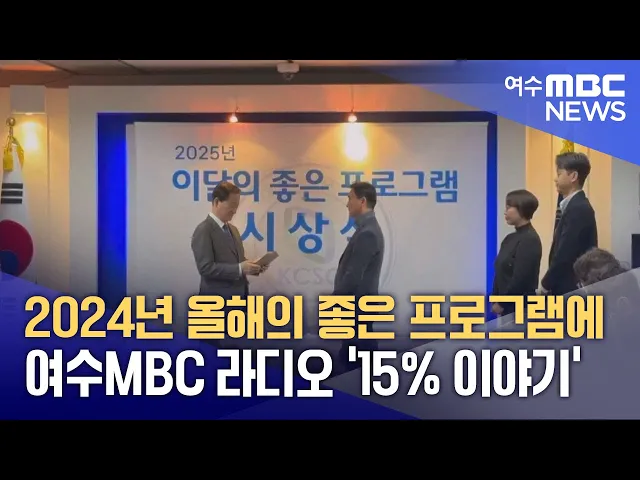 여수MBC 특별기획 라디오 다큐멘터리'15%의 이야기'가 방송통신심의위원회의 지상파 라디오 부문2024 올해의 좋은 프로그램에 선정됐습니다.방심위는 오늘(18) 서울 양천구 목동방송회관에서 시상식을 열고,지방 거주 난임부부들의 실제 사례 인터뷰를 통해난임에 대한 제도적 변화와 인식 개선을 촉구했다고 평가했습니다....