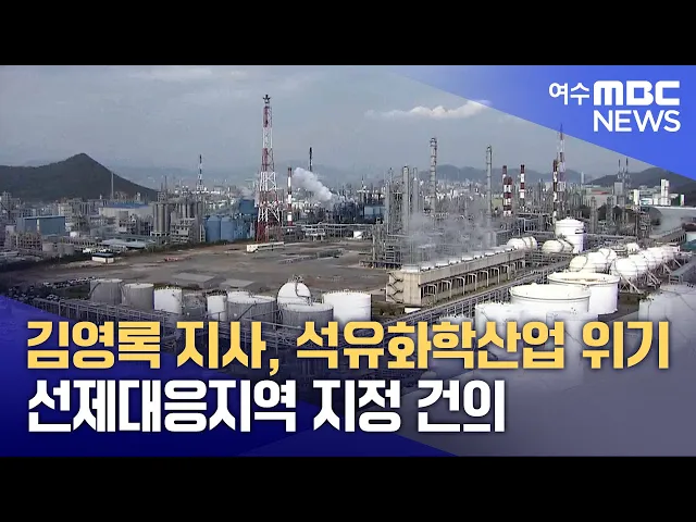 김영록 지사가 여수 석유화학산업 위기 극복을 위한산업위기 선제대응지역 지정을산업통산자원부 장관에게 건의했습니다.김 지사는 안덕근 산업부 장관과의 통화에서석유화학산업 불황으로지역경제 침체가 장기화되고 있고,다음 달 산업위기 선제대응지역 지정을 신청할 예정이라며신속한 지정을 요청했습니다.또 지난해 10...