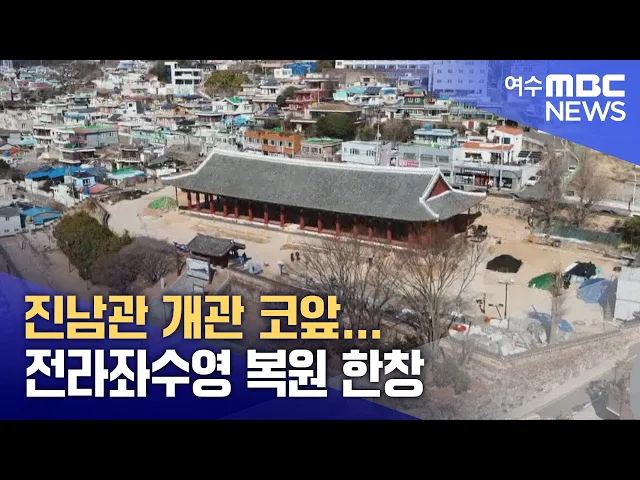 ◀ 앵 커 ▶임진왜란 당시첫 삼도수군통제영을 놓고여수와 통영이 갈등을 빚고 있다는 소식, 어제(18) 전해드렸는데요.이런 가운데 이순신 장군이 수군을 지휘했던 국보 진남관이 오랜 공사 끝 재개관을 앞두고 있습니다.최황지 기자의 보도입니다.◀ 리포트 ▶조선 수군의 지휘소이자 여수 유일의 국보인 진남관입니다.2천15년...