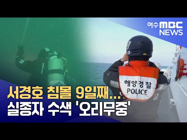 ◀ 앵 커 ▶여수 인근 해상에서 침몰한제22서경호의 실종자 수색 작업이 9일째 이어지고 있습니다.실종자 가족들은 힘든 시기를 보내면서도, 관계기관의 수고에 감사하다며 손편지를 전달했는데요.해경의 밤낮 없는 수색에도 불구하고, 실종자 발견 소식은아직까지 들려오지 않고 있습니다.최황지 기자입니다.◀ 리포트 ▶"수색...
