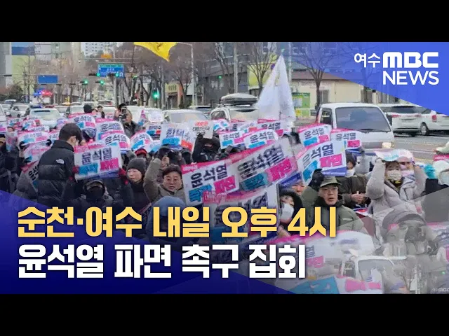 전남 동부권에서도윤석열 대통령 파면을 촉구하는주말 집회가 이어집니다.윤석열 퇴진 순천시민비상행동은내일(18) 오후 4시 순천시 연향동 국민은행 사거리에서윤 대통령의 빠른 구속과 파면을 요구하는 촛불광장을 개최합니다.여수시민비상행동도같은 시간 여수 흥국체육관 옆 도로에서시민시국대회를 열고 윤 대통령 파...
