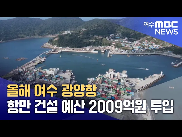 올해 여수 광양항에 항만 건설 예산 2천9억원이 투입됩니다.여수지방해양수산청은 올 한해 광양항 광역 준설토 신규 투기장 호안 7.5km 확보를 위한 국가 사업비 1455억원을 새롭게 확보했다고 밝혔습니다.이와 함께 노후화된 여수․낙포부두 개축을 위한 공사비 281억원, 거문도항 제2삼호교와 방파제 시설 확충을 위한 23...