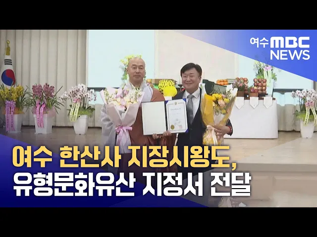 여수 한산사 지장시왕도가전라남도 유형문화유산으로 지정됐습니다.1724년 조선시대에 그려진 지정시왕도는불화의 색감과 인문의 표현, 유려한 필치 등, 18세기 전반 불화의 특징을 잘 보여주고조성연대와 봉안처 참여자 등이 확인돼지난해 10월 4일, 도 유산에 지정됐으며,불교사와 미술사적 가치가 큰 것으로 평가받고 있...